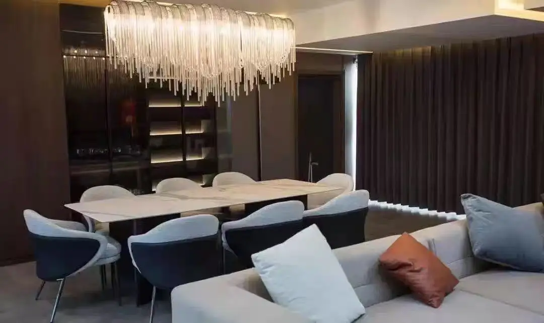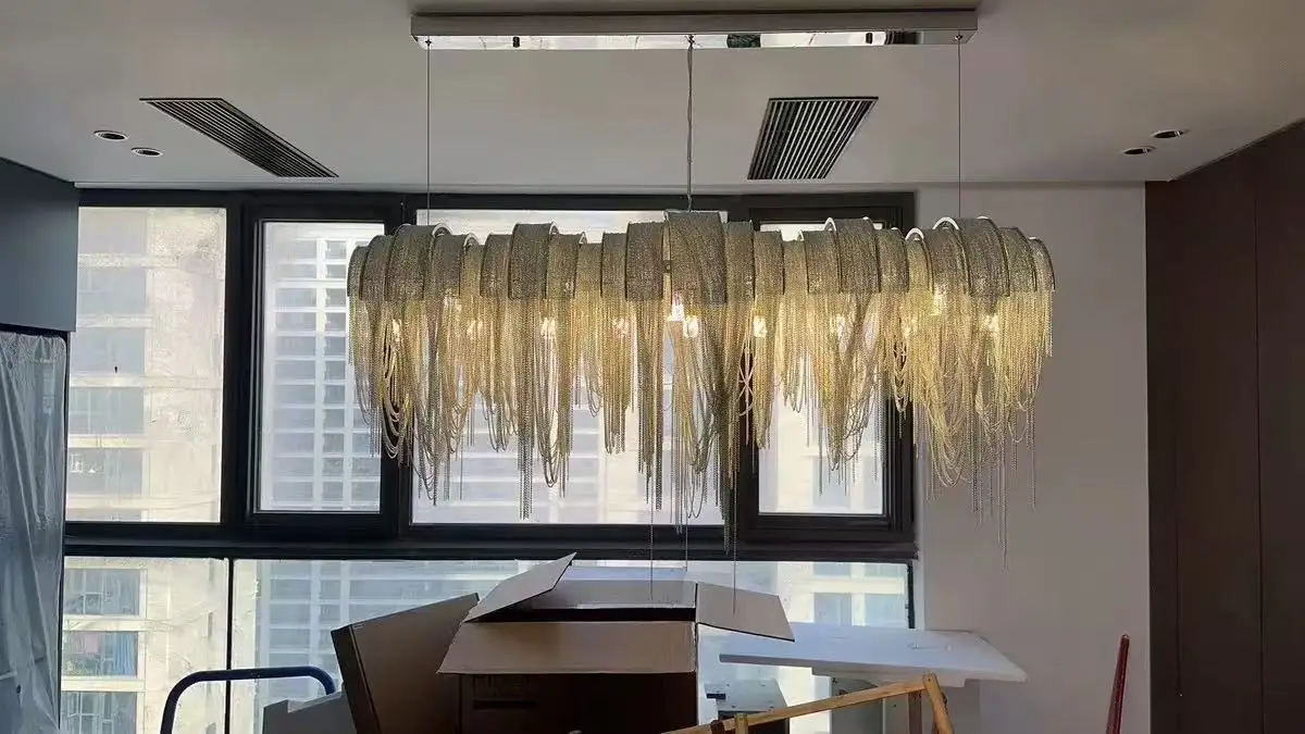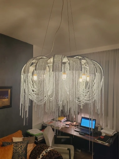 Illuminate with Royal Opulence: Luxury Modern Light Chandelier. Indulge in the splendor of Luxury Modern Light Chandelier, a symbol of royal opulence and contemporary elegance. Crafted with precision and adorned with luxurious tassels, this chandelier embodies the epitome of modern luxury. Whether adorning the dining room of a grand villa or enhancing the ambiance of an upscale hotel lobby, its radiant glow and exquisite design captivate the senses and elevate the atmosphere to unparalleled heights of magnificence. Elevate your lighting experience with the regal opulence of this exquisite chandelier, and let its majestic presence illuminate your space with modern charm.